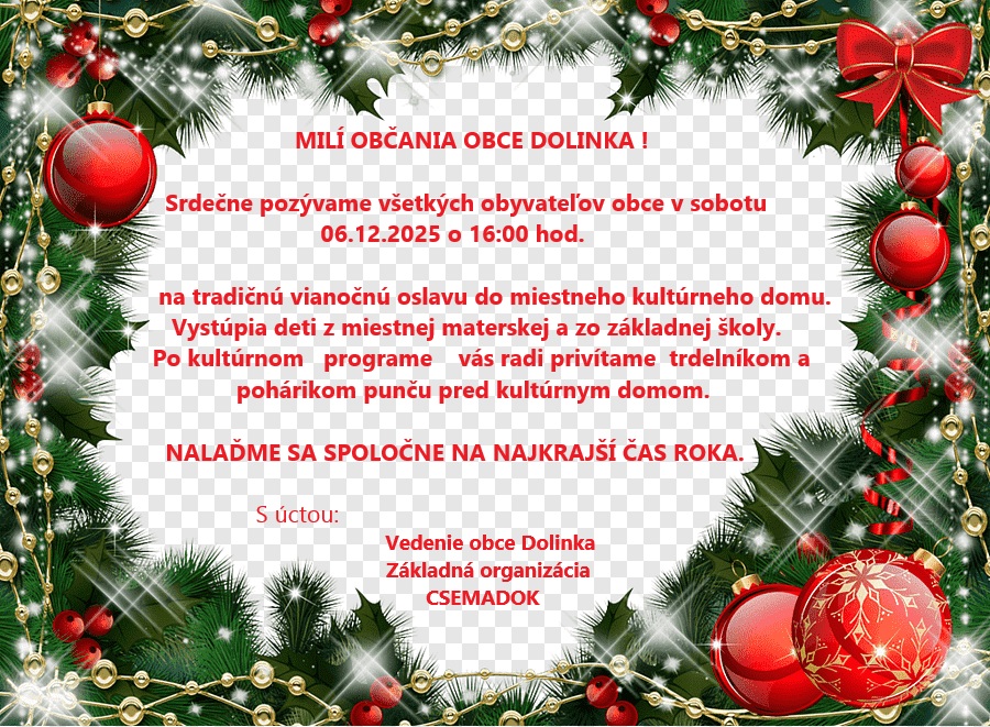 21-ho decembra 2025 o 15:30 hod., v rímskokatolíckom kostole sv. Juraja v Dolinke sa bude konať adventný koncert. Predstaví sa zbor VOX HUMANA. Povedie ho Sándor Bence.